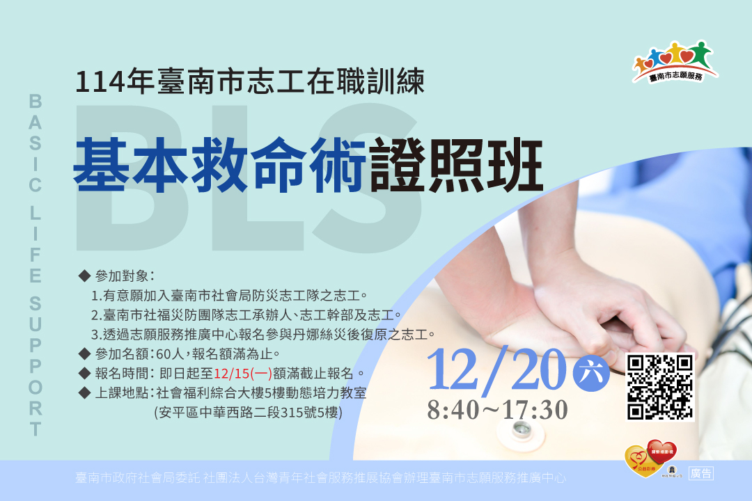 114年臺南市志工在職訓練 「基本救命術(BLS)證照班」