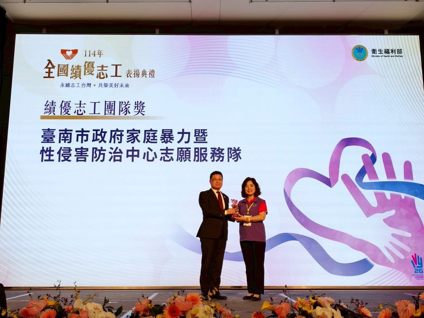 甫獲「全國績優志工團隊獎」的臺南市政府家庭暴力暨性侵害防治中心志願服務隊,隊中的靈魂人物-隊長蘇玉蘭,秉持「施比受更有福」信念,在奉獻的路上已走了35年。