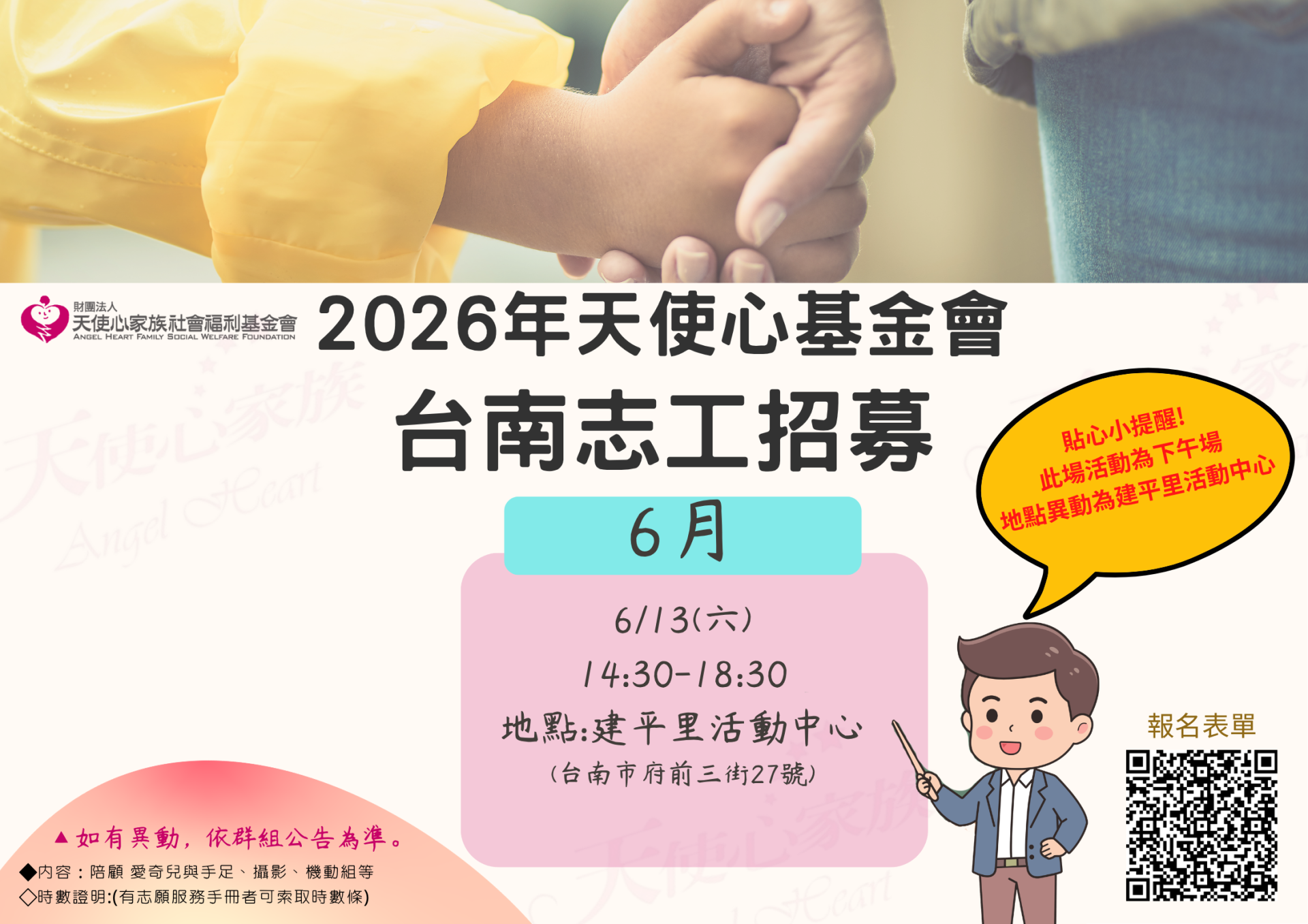 如果你喜歡孩子、樂於陪伴、願意用行動帶來溫暖,誠摯邀請你加入我們的志工行列!