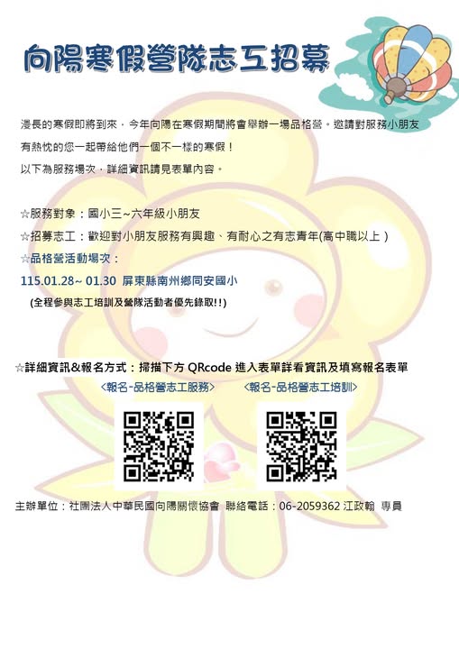誠摯邀請熱心服務、喜愛與小朋友互動的你,一同加入向陽關懷協會的行列~