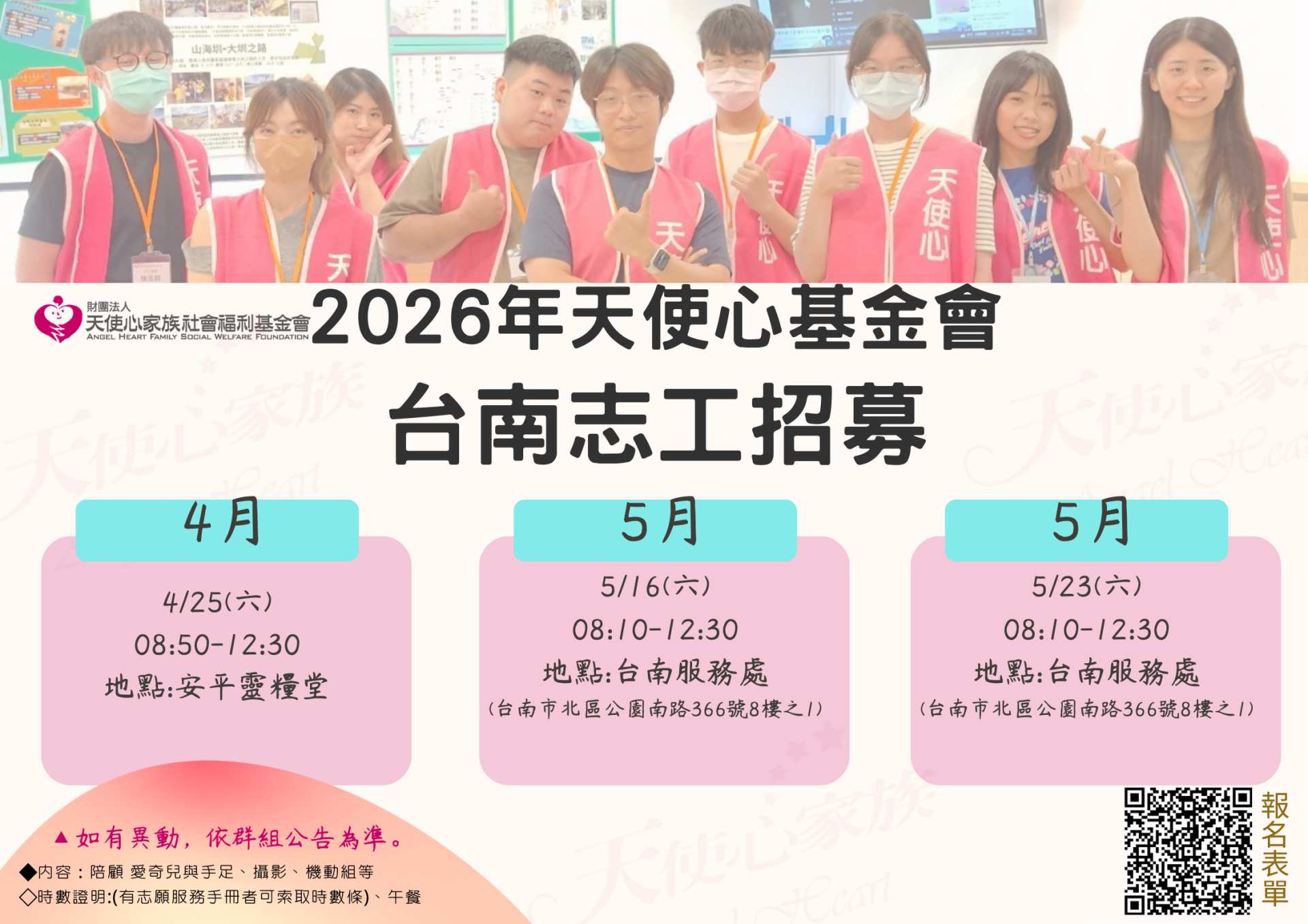 2026天使心基金會台南志工招募